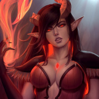 red accents. There appears to be some sort of magical or elemental force emanating from her right hand, which suggests she may have powers related to fire or magic. The overall aesthetic of the image, including her attire and