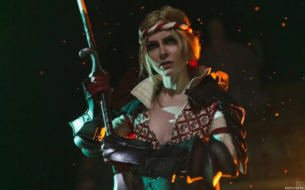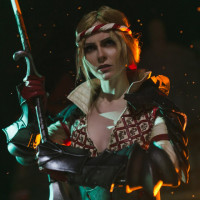 fantasy setting, with elements such as a fur-lined cloak or coat and armor suggesting he might be a witcher or a warrior of some sort. The character is portrayed by actor Graham McTavish in the video