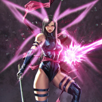 readiness for combat or a pose that might be related to her character's theme or powers. The other hand is adorned with what looks like a gauntlet or