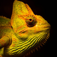distinctive coloration, which can change depending on the light it's exposed to and the temperature of its surroundings. Chameleons are reptiles belonging to the family Chamaeleonidae, with their