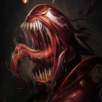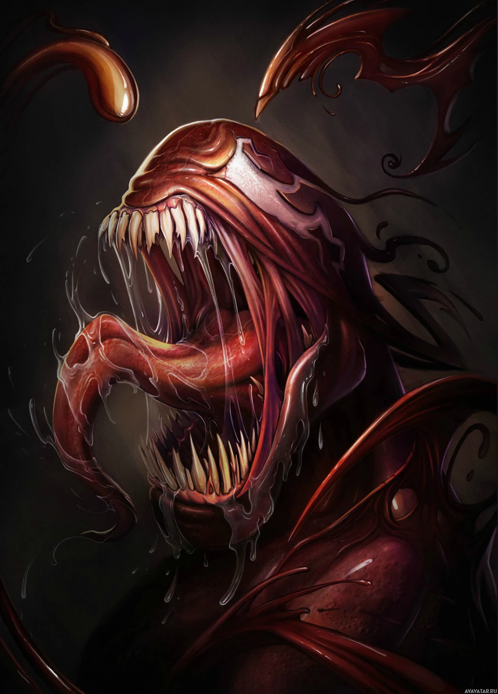 The image depicts a character that resembles Carnage, a fictional supervillain in the Marvel