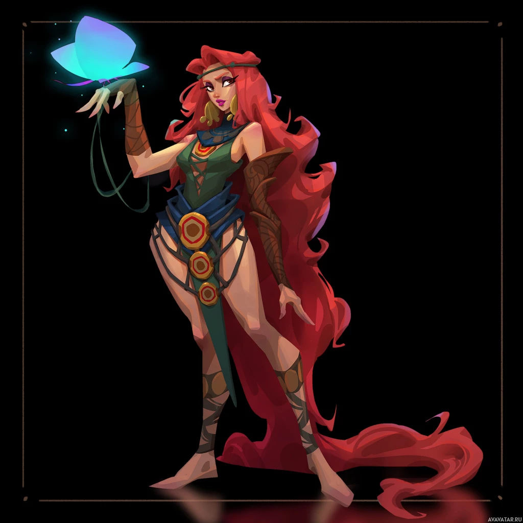 a female warrior or magical practitioner. She has vibrant