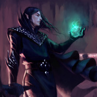 a magical effect, as suggested by the glowing sphere in their hand. They are wearing