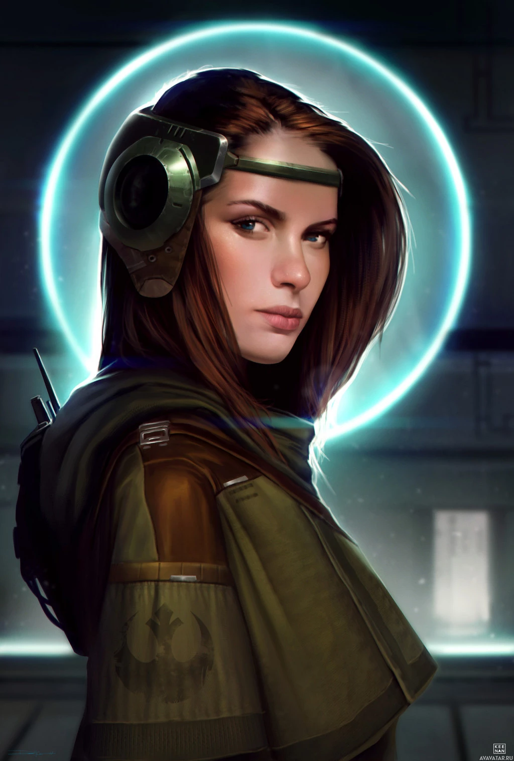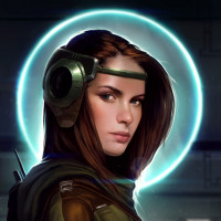 advanced technology gear, possibly including a visor or headpiece that might be part of a suit or helmet. There's also visible tech around her, like a circular interface resembling a holographic display or radar system. She is dressed in attire with a modern and functional design, suggesting she could be a character from