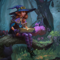 lush with greenery, with trees visible behind the witch. The art style suggests it could be from a fantasy-themed game,
