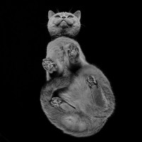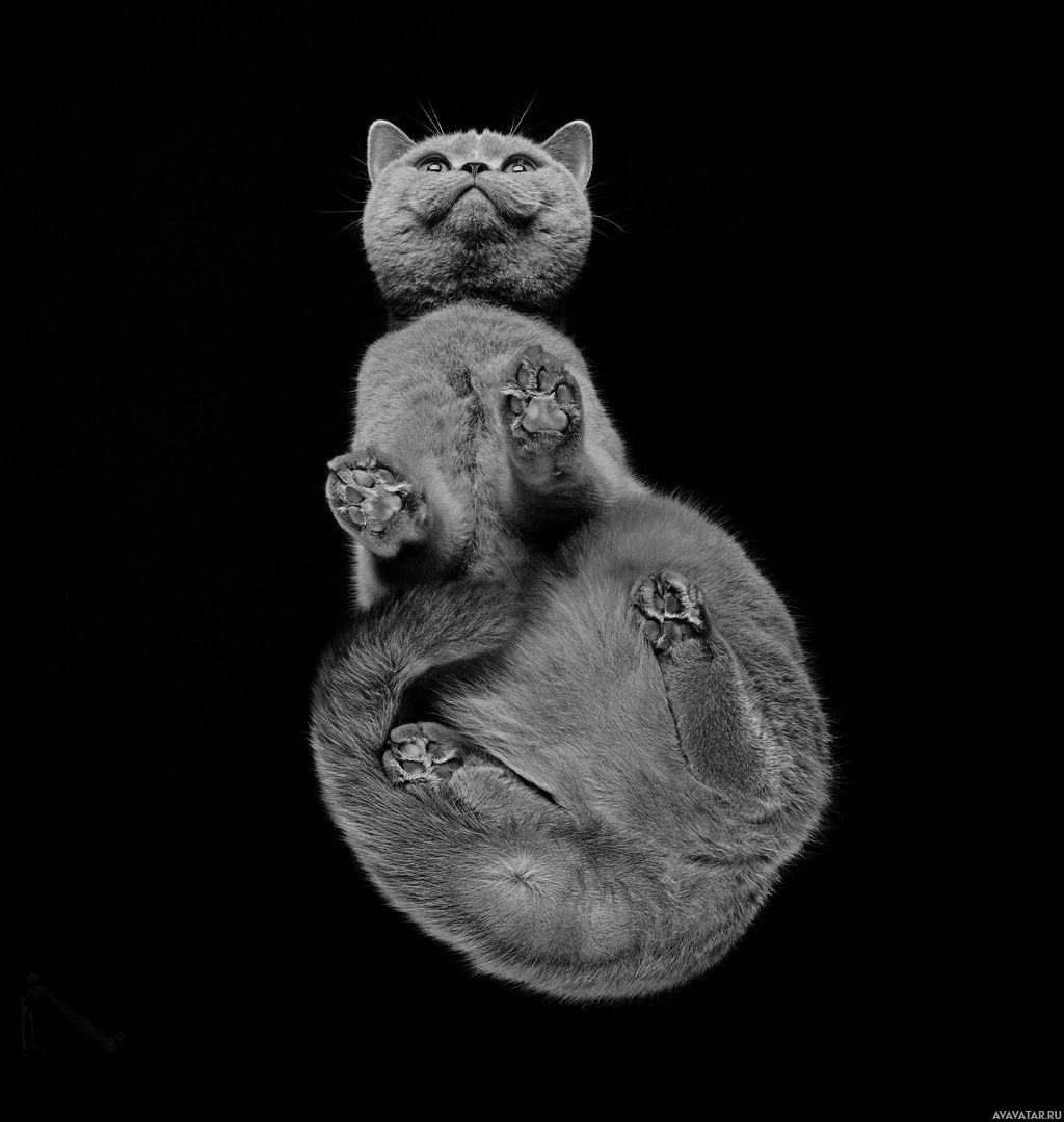 an optical illusion where it seems like the cat is defying gravity. This image likely uses a technique called inversion photography, which involves taking
