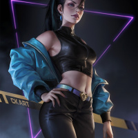 a female character, presumably a part of the "League of Legends" universe. She is depicted with