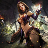 female character. She is dressed in armor and appears to be casting spells or engaging in some form of