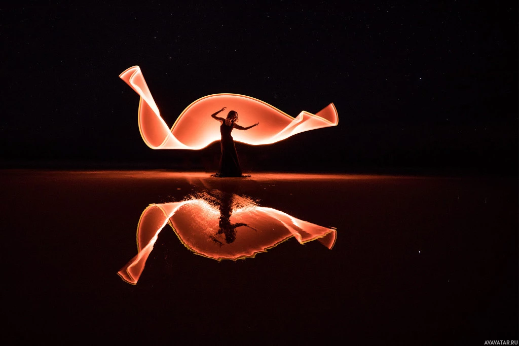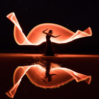 the use of lighting or reflections, which highlights certain parts of the dancer's body in a way that suggests a fish shape when viewed from a specific angle and perspective. It's a creative and artistic photograph capturing motion and form with light.