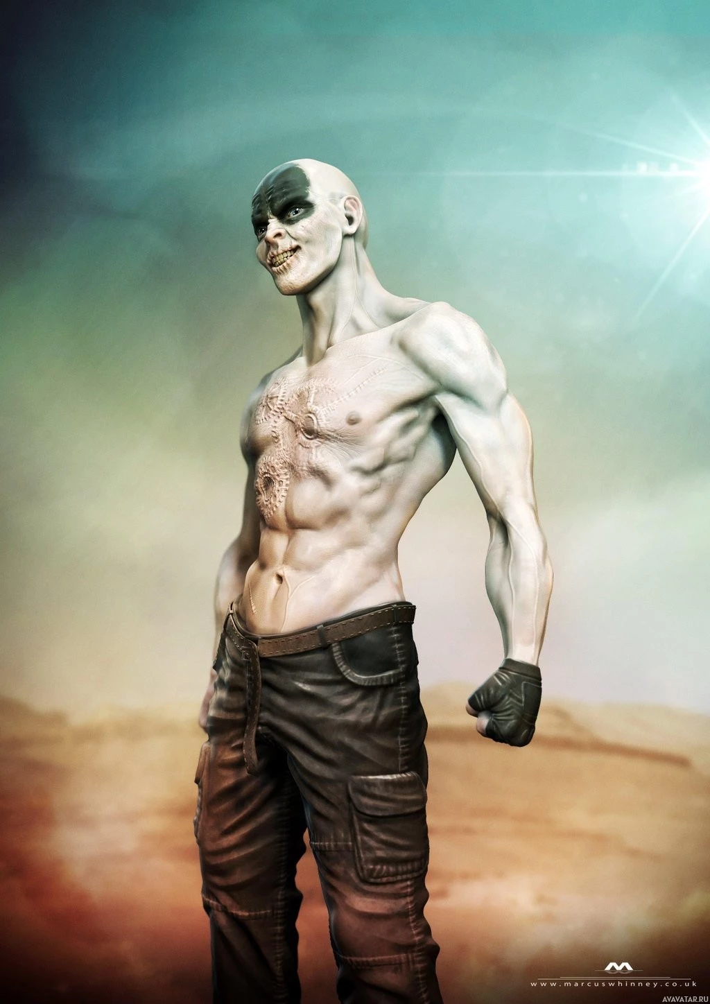a muscular man with shaved skin and tattoos on his arms. Nux is known for being one of the War Boys and is characterized by his loyalty to