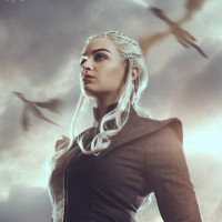 the sense of motion and intensity. The overall image conveys a strong and determined demeanor, fitting for the character Daenerys Targaryen who is known for her leadership and determination throughout the series.