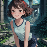 an animated girl with a cheerful smile. She has