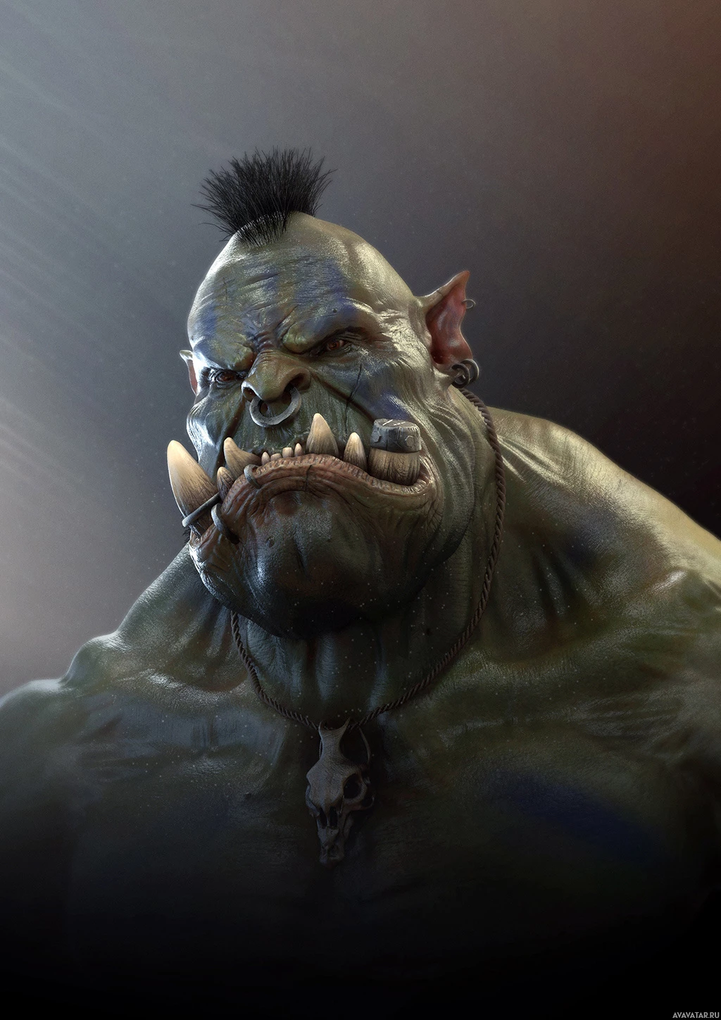 The image depicts a fantasy orc character, which is a humanoid figure commonly found in