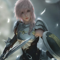 a stern expression on her face, which could suggest she is focused on the task at hand. The background is blurred with what looks like snowflakes, giving the scene an epic or dramatic feel. The overall style of the image is reminiscent of fantasy-themed artwork or concept illustrations for