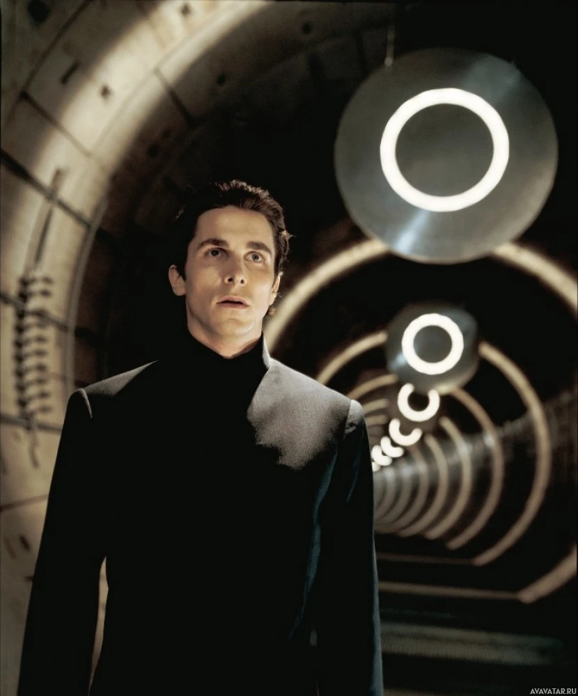 a dark suit and has short, styled hair. His expression is serious and he seems focused on something out of frame. Behind him are large structures that resemble metal pipes and ductwork, suggesting a setting related to technology,