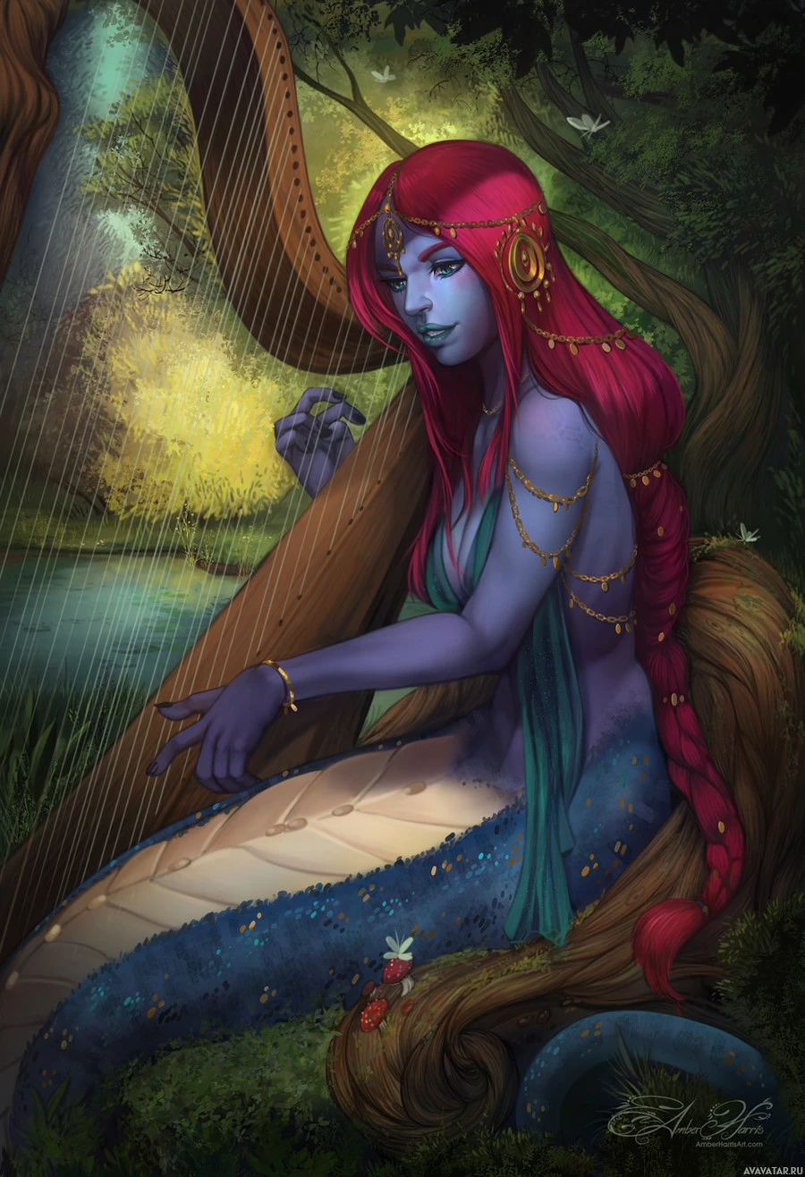 The image depicts a fantasy-themed illustration of a character who appears to be a naga, which is