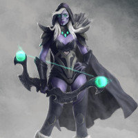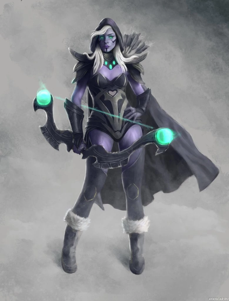 the video game "Dota 2," specifically, Drow Ranger. The character is depicted with