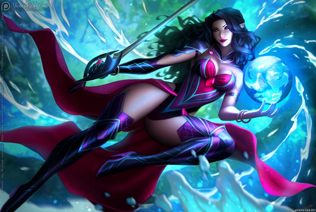 a blue vortex or portal, enhancing the fantastical theme of the image. The character is in