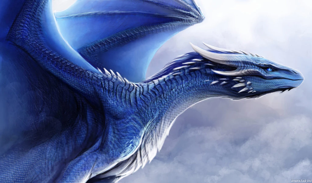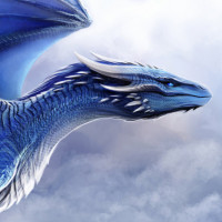 blue dragon with a detailed and intricate design. It has scales that give the appearance of armor, large wings spread wide, and it is looking towards the viewer with
