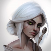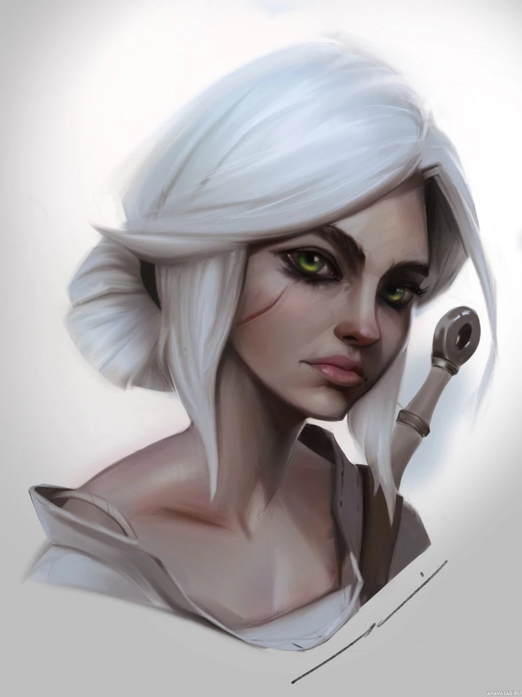 The image shows an illustration of a character from the "The Witcher" series. This is Ciri, a prominent