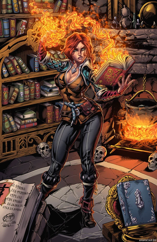 a female character from the video game "The Witcher 3: Wild Hunt." She is portrayed with