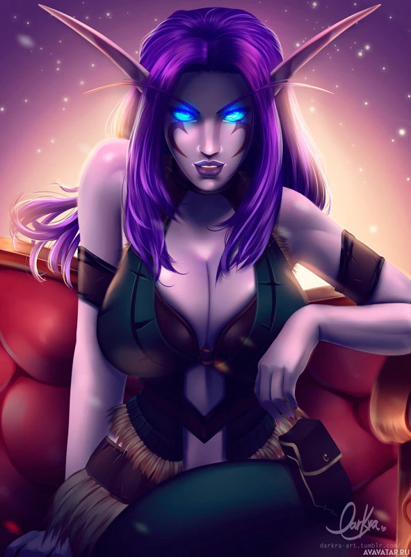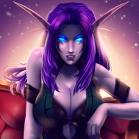 На картинке изображен персонаж из видеоигры «World of Warcraft». У нее фиолетовые волосы и она изображена в форме сон, что говорит о том, что она может играть персонажа, связанного со сном. Художественное произведение подробно и ярко, захватывая фэнтезийный аспект игры.