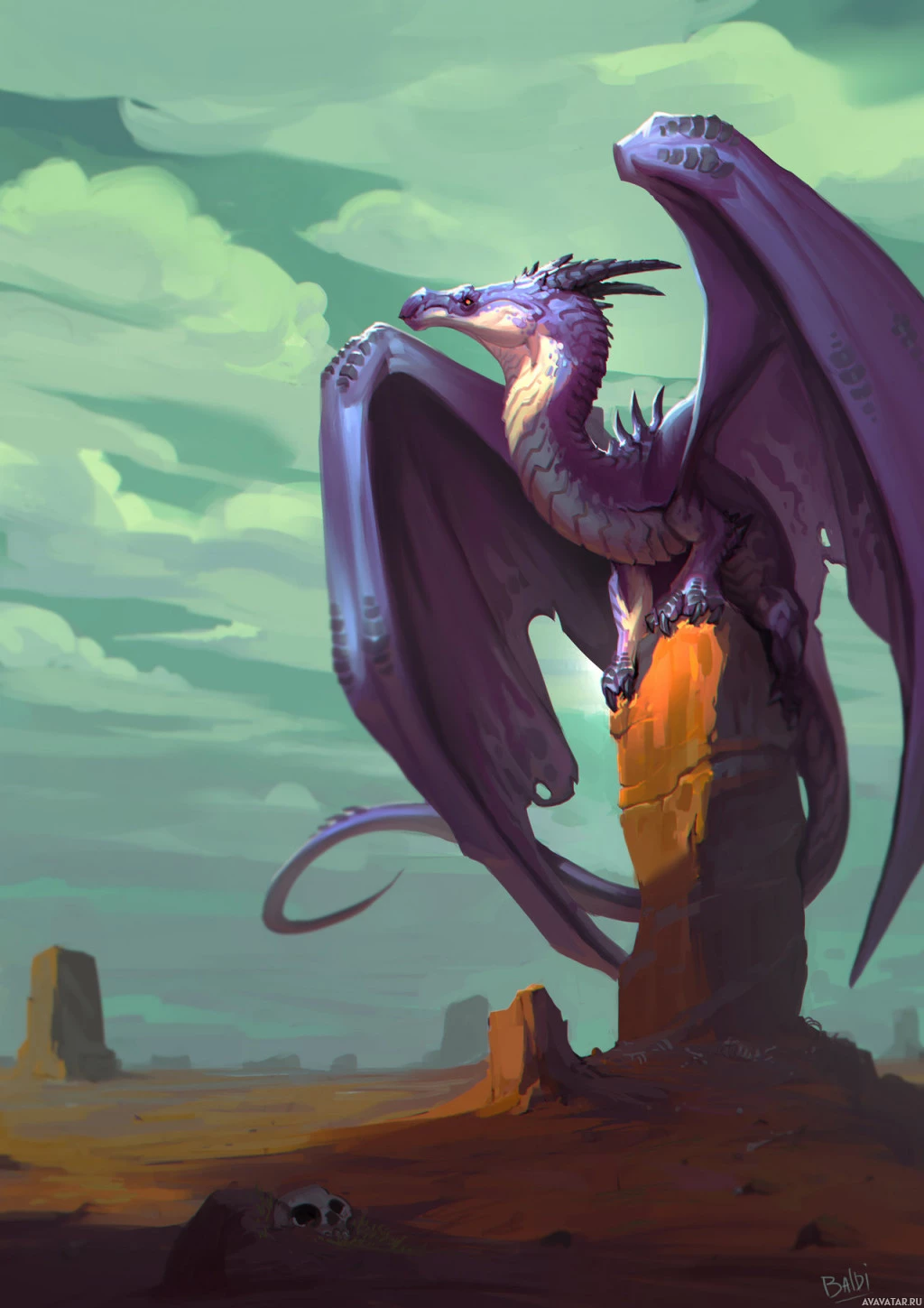 The image shows a fantasy-themed illustration of a dragon. It's set in