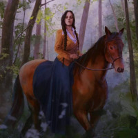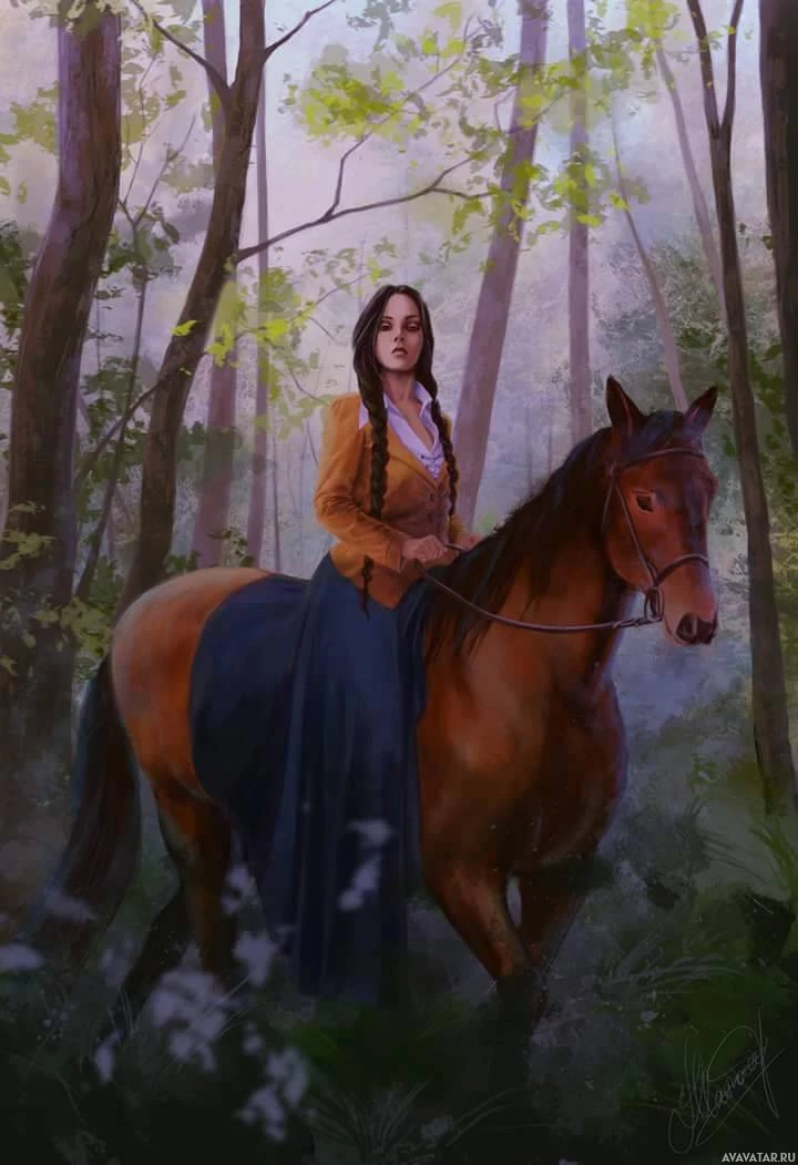 the back of a horse. The individual appears to be a woman with long