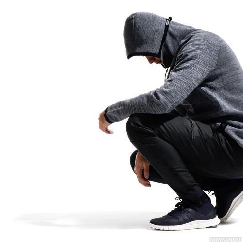 a moment of contemplation. He is wearing athletic clothing that includes a hoodie and sweatpants, suggesting he might be an athlete or involved in some form of