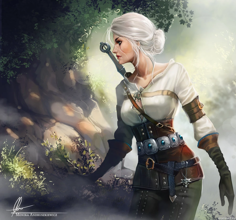 This is an illustration of a character from "The Witcher 3: Wild Hunt,"