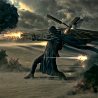 presence of smoke or clouds suggests some kind of explosive event might have just occurred or is about to happen. The overall mood of the image is intense, with a focus on action and possibly suspense.