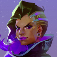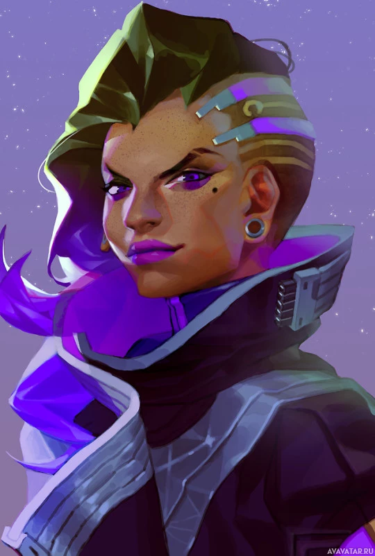 a character from the game "Overwatch," known as Sombra. She is depicted with