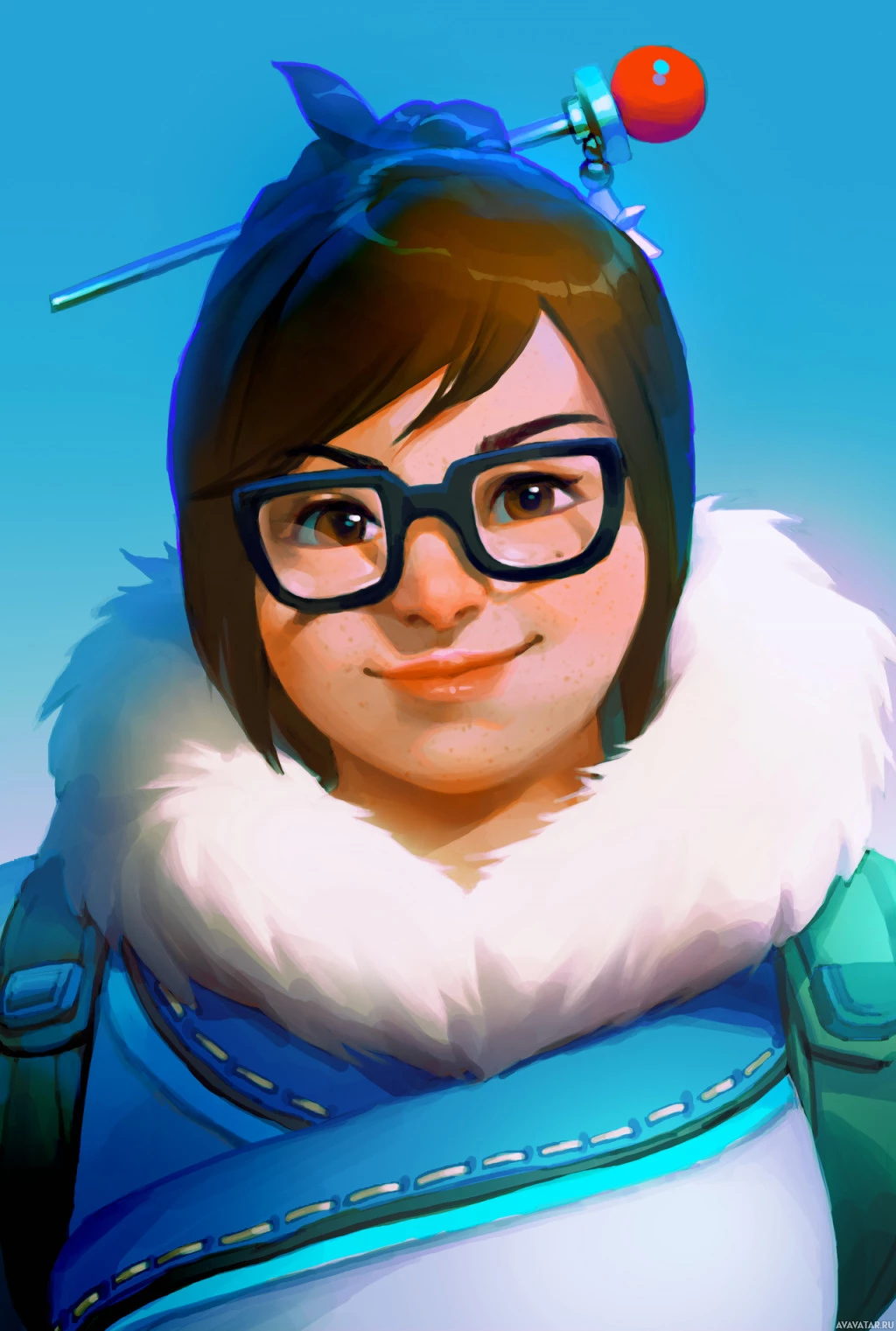 lined hood and is equipped with what looks like a sword sheathed at her side. The character is depicted smiling and looking directly at the viewer.