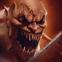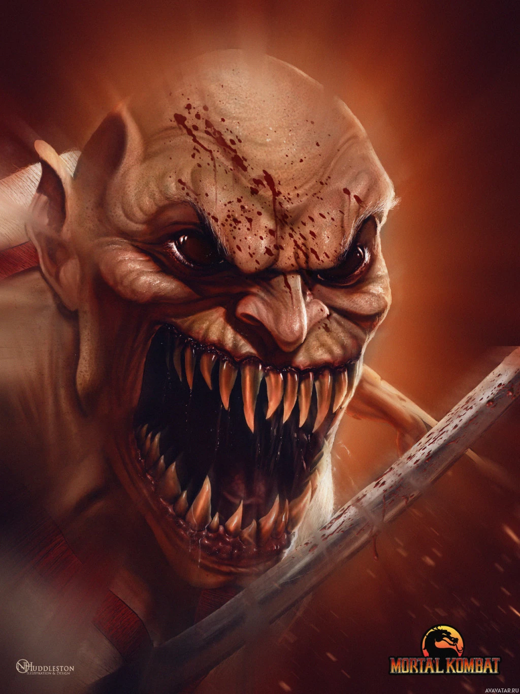 red eyes, sharp teeth, and an aggressive demeanor. He appears to be holding a weapon, which is typical of the fantasy-themed violence present in the Mortal