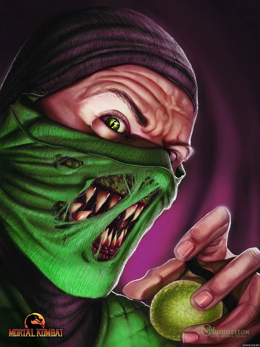 The image depicts a character from the Mortal Kombat video