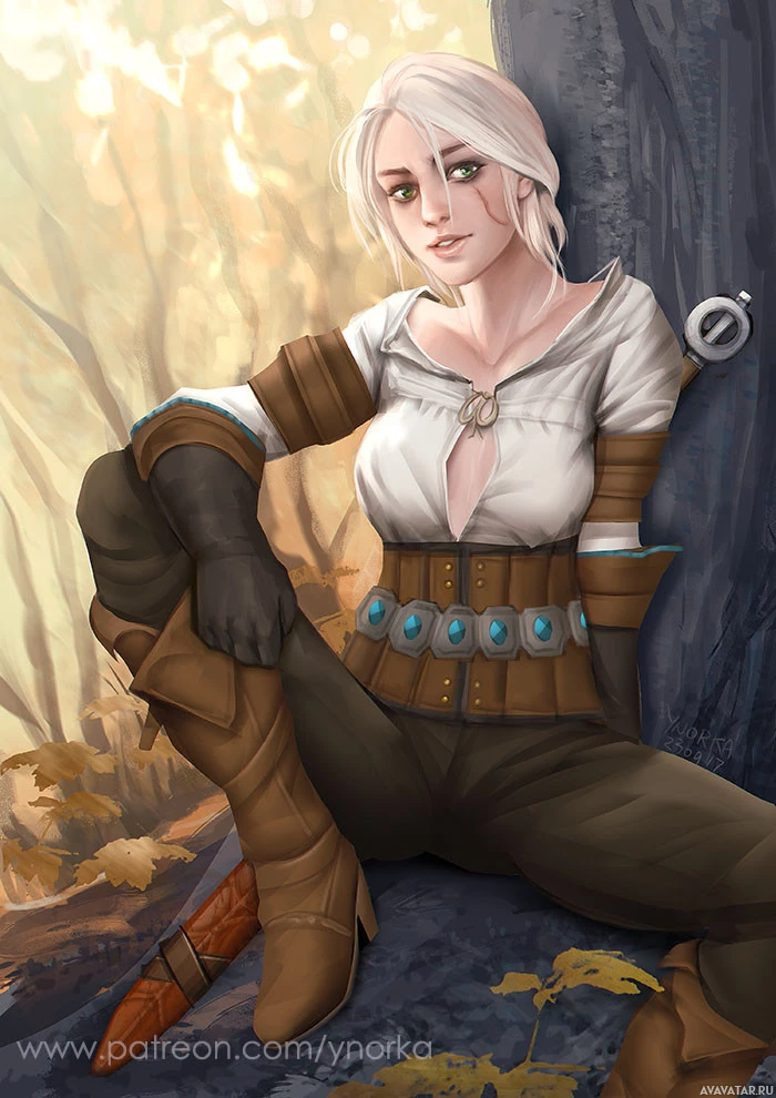 the video game "The Witcher 3: Wild Hunt," specifically portraying the character Ciri. She is depicted as an adventurous and strong-willed individual, known for her swordsmanship and