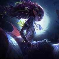 body of a human, but her lower body is replaced with fish-like features, which is characteristic of traditional depictions of mermaids. The character is illustrated in an artistic style and is set against