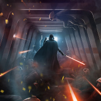 a commanding presence at the center of what appears to be an Imperial shuttle or spacecraft interior. Surrounding him are various soldiers and stormtroopers, also known as stormtroopers, who are loyal to the Empire led by