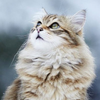 a long coat, which is likely thicker and more suitable for colder weather than short-coated cats. Its fur looks fluffy and well-groomed, indicating that it might be well taken care of by its owner. The cat's expression suggests curiosity or perhaps anticipation, which could imply it's either observing something interesting or awaiting an event or interaction with a human. The overall mood of the image is serene and somewhat whimsical due to the cat's gaze and