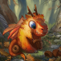 a forest environment. Overall, this image portrays a whimsical fantasy character that combines elements of both dragons and lizards.