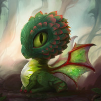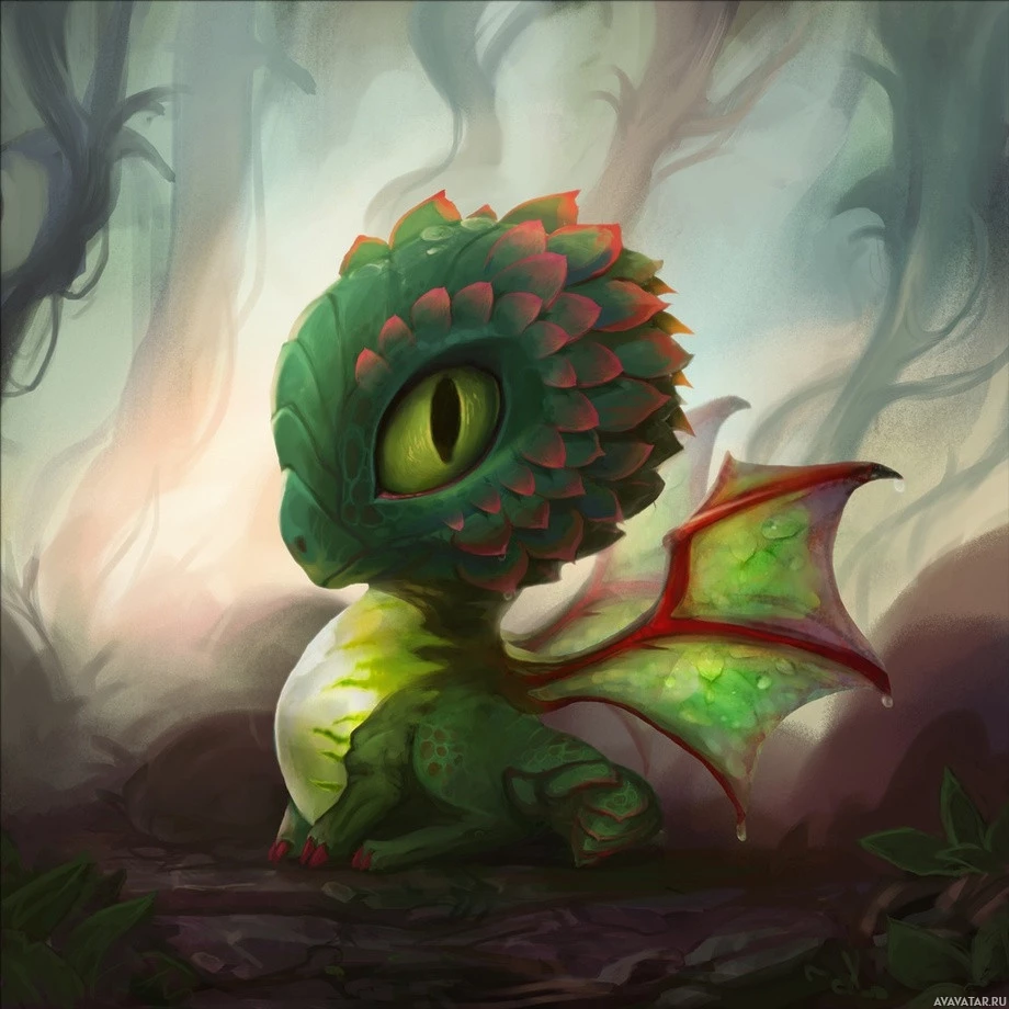 a fantasy creature that resembles a baby dragon. It has large,