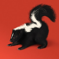 The image shows a stylized illustration of an animal with the distinctive black and white stripes characteristic of skunks. The animal is depicted in