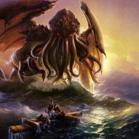 menacing creature that resembles Cthulhu, known as the Great Old One in the mythology of H.P. Lovecraft. It has