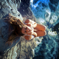 Картинка показывает человека, лежащего на спине с закрытыми глазами, как будто отдыхающего или расслабленного. Это фотография, которая запечатлевает спокойствие момента.