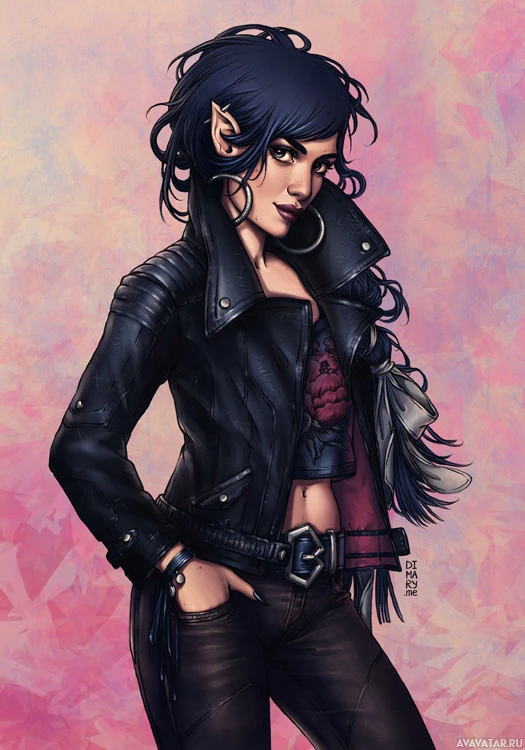 The image shows a character that appears to be a fantasy-themed elf. She has long,