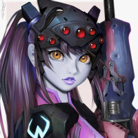a sniper rifle and wearing a helmet with visor and decorative patterns. The character has distinctive