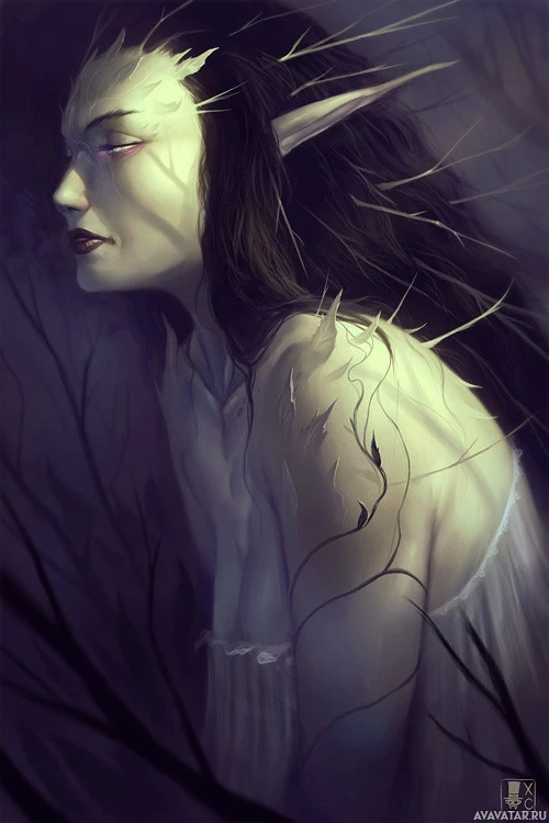 The image features a fantasy-themed illustration of a woman with pointed ears, which could suggest an elf or similar