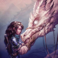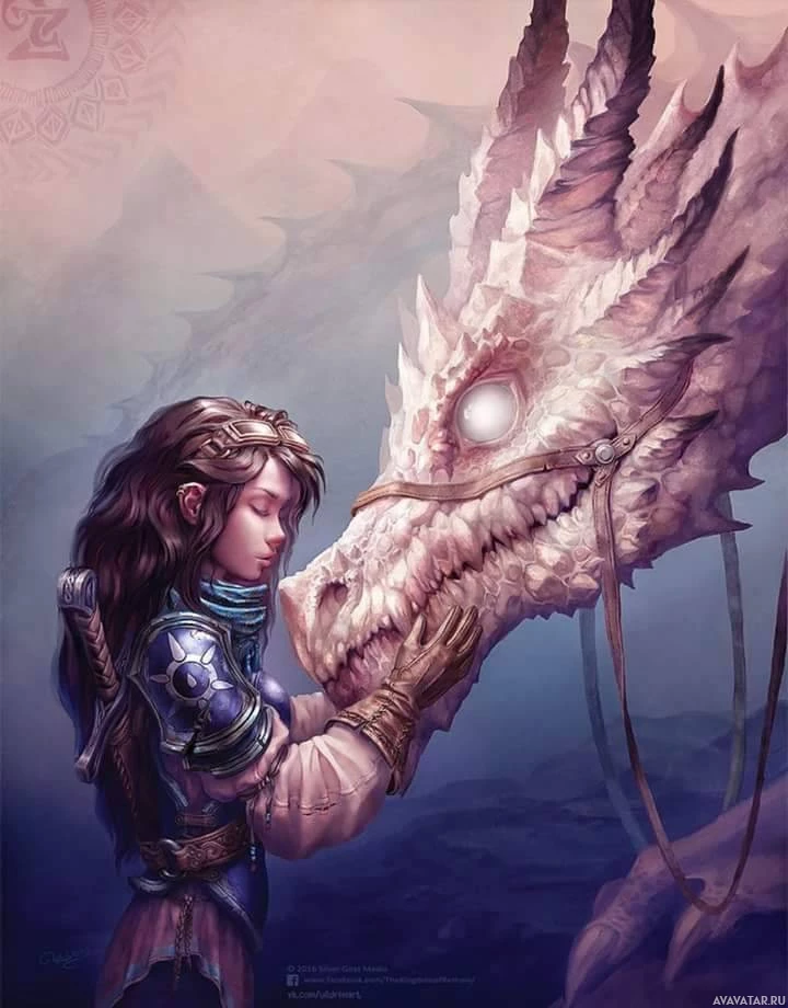This is an illustration featuring a girl and a dragon. The girl appears to be from a fantasy setting, possibly a character from