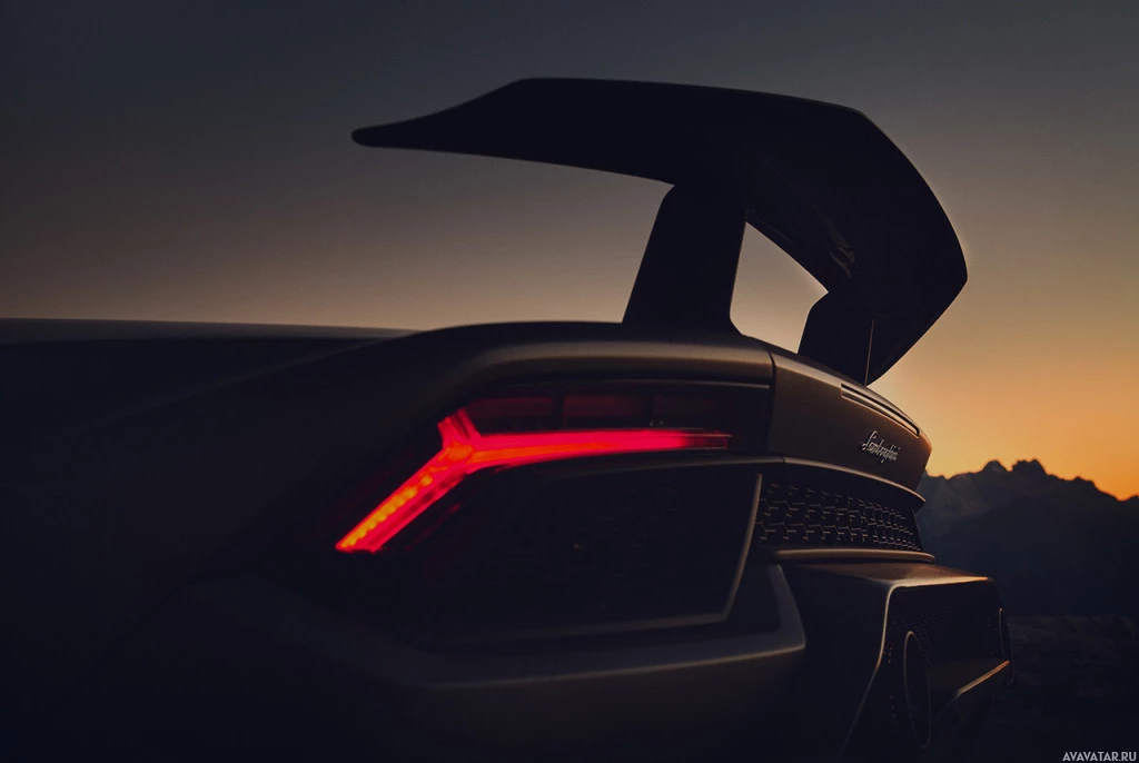 a sports car. It is taken during sunset or sunrise, as indicated by