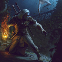the Witcher series. The artwork captures the essence of the game's fantasy and action elements.
